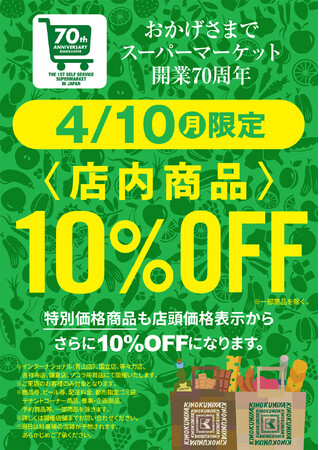 店内商品が店頭表示価格より10%OFF(※一部商品を除く)でご購入いただける大変お得な1日です。