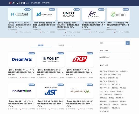 投資家とIFAのマッチング事業・人材紹介業を運営するアドバイザーナビ株式会社(所在地:中央区日本橋、代表取締役:平 行秀、以下当社)が運営するIR情報サイトの取材記事が90本を突破いたしました。