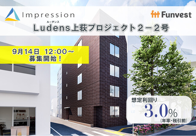 「未来をわかちあう投資」を提供する「Funvest(ファンベスト)」(以下、Funvest)は、「Impression Ludens上荻プロジェクト2-2号」(以下、本ファンド)の募集を9/14より開始しますので、お知らせいたします。