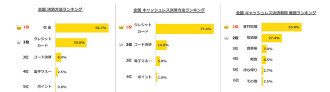全国での決済方法では、現金が最も多く56.7%で第1位は先月と変わらず。