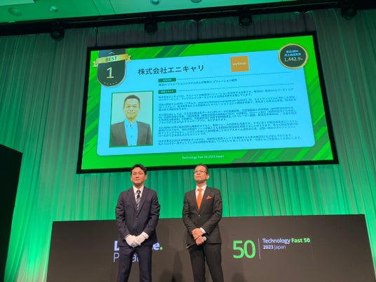 ラストマイルに特化した物流ソリューションを提供する株式会社エニキャリ(以下、当社)は、デロイト トーマツ グループが3月21日(木)に発表したテクノロジー・メディア・通信(以下、TMT)業界の収益(売上高)に基づく成長率のランキング「Technology Fast 50 2023 Japan」において、過去3決算期の収益(売上高)に基づく成長率1,442.9%を記録し、50位中1位を授賞しました。