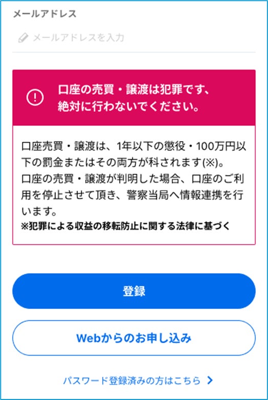 なお、以下のお客さまにつきましては、本アプリをご利用いただけませんので、当社のホームページの口座開設画面「Webでお申し込みのお客さま」よりお手続きをお願いいたします。