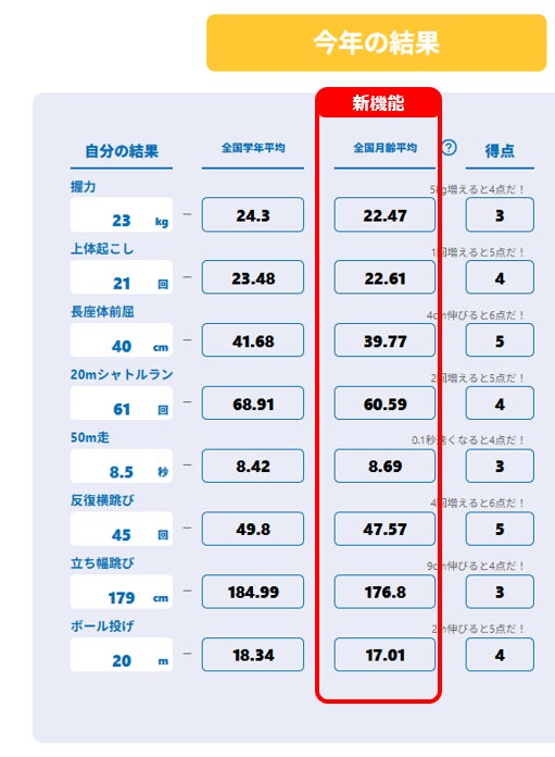 今回特許を取得した全国月齢平均機能により、児童・生徒本人の体力・運動能力の現状認識を手助けするだけでなく、保護者や教員の児童・生徒の体力・運動能力に対する現状認識をサポートする事にも有用であると考えられます。