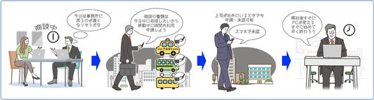 残業は事前申請必須とする社内ルールに対し、これまでは、外出から会社に戻ったときにはすでに上司が退社しており、急ぎの要件が発生しても承認が得られず残業が許可されませんでした。スマホからの申請・承認が可能となることで、部下・上司双方が場所を選ばずより手軽に申請・承認でき、スムーズな運用が可能となります。