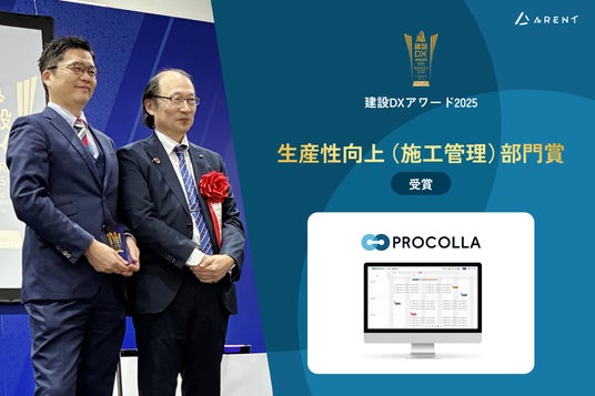 株式会社Arent(本社:東京都港区、代表取締役:鴨林広軌、東証グロース:5254)は、2025年12月10日(水)から12日(金)に開催された「第10回 JAPAN BUILD-建築の先端技術展-第5回 建設DX展 東京」内で実施された「建設DXアワード2025」において、AIクラウド工程管理システム「PROCOLLA(プロコラ)」が生産性向上(施工管理)部門賞を受賞したことをお知らせします。