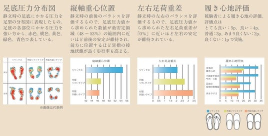 桜美林大学名誉教授の阿久根英明先生との共同開発のもと、足底圧力分布、重心位置、左右の荷重バランス、履き心地評価など、多角的な検証を通じて改良を重ねています。