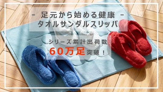 バスタイムから快眠まで、健やかで心地よいライフスタイルを提案する内野株式会社(本社:東京都中央区/代表取締役社長:内野孝信)は、人気商品「タオルサンダルスリッパ リラックス」が、シリーズ累計出荷数60万足(※1)を突破したことをお知らせいたします。2011年3月の販売開始以来、「タオルサンダルスリッパ」シリーズ(※2)は、お客様からの声を取り入れて改良を重ねてきました。人間工学に基づいた綿密な設計と、吸水性・通気性に優れたタオル素材を使用することで、足元に快適さと健康をもたらすアイテムとしてライフスタイル誌や生活情報番組など、多くのメディアでも取り上げられています。家族全員で使える実用性やギフトとしての人気も高まっています。(https://www.uchino.co.jp/)