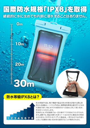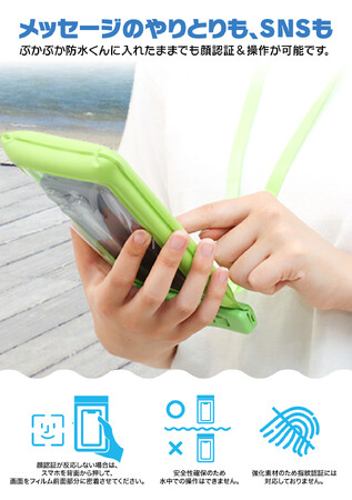 Fun Standard株式会社(本社:福岡県大野城市)が展開するモバイルアクセサリーブランド「BELLEMOND(ベルモンド)」より、スマホ防水ケース「スマホぷかぷか防水くん」が発売開始されました。パチっと閉じるだけで密閉される、防水等級IPX8のスマホケースです。水面で浮き輪のように浮く「ぷかぷかエアクッション構造」を採用しているので、携帯電話の紛失防止や落下時の衝撃防止効果もあるフローティングタイプのケースとなっております。