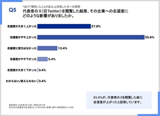 ■ 代表者のXを見た求職者の83.4%が志望度アップ