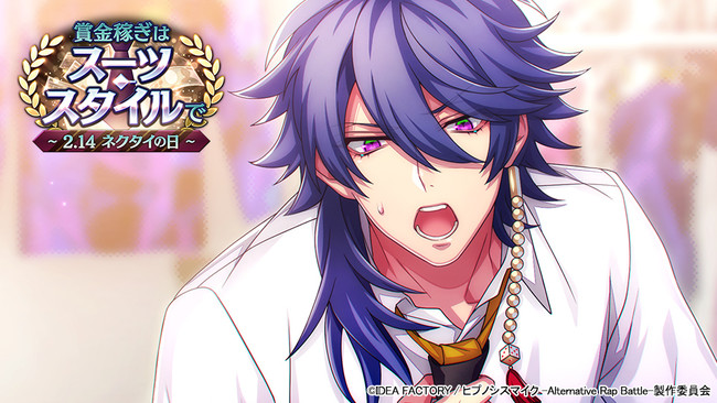 スマートフォン向けゲームアプリ『ヒプノシスマイク -Alternative Rap Battle-』にて、イベント「賞金稼ぎはスーツ・スタイルで~2.14 ネクタイの日~」が本日開始いたしました。