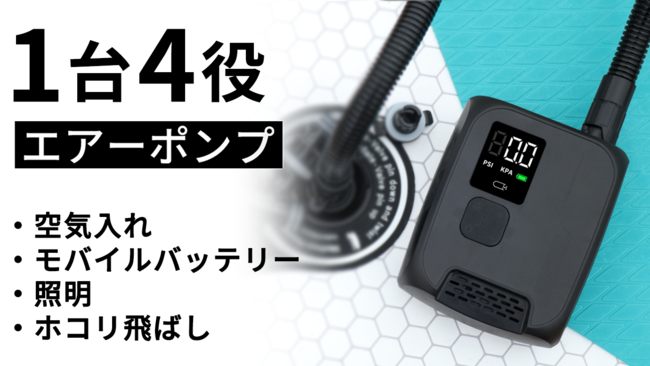 最大空気圧は驚きの137kPa(20PSI)、SUPやエアーテントなどの大型製品に対応!
