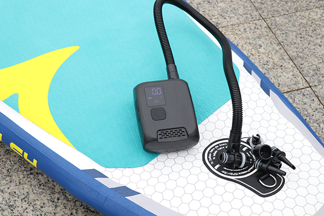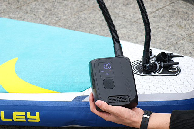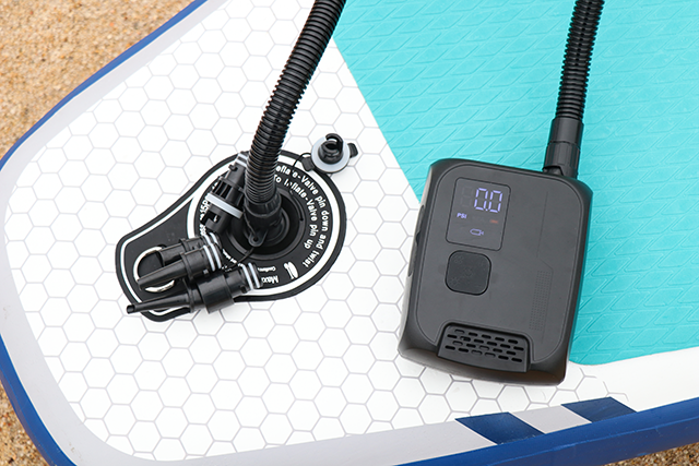 手のひらサイズなのに、「NW02-P」の対応可能な空気圧範囲は驚きの6~137kPa(1~20PSI)、最大空気流量は100L/minで、ほとんどの空気入れが必要なものに対応可能。浮き輪やバランスボールはもちろん、一般的な電動エアポンプでは対応できないスタンドアップパドルボード(SUP)でも素早く膨らませます。