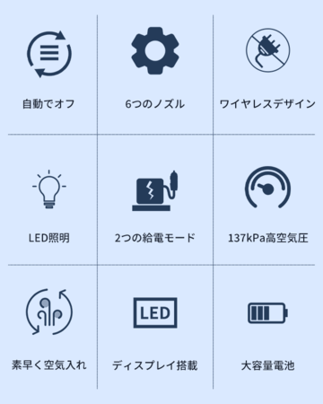 6種類のノズル付属、3つの空気入れモード搭載、自動停止機能……初心者でもすぐ使いこなせる!