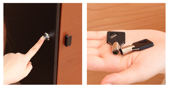 ボタンを押すだけで施錠でき、専用の鍵をまわすだけの簡単解錠だから、どなたにも使いやすいことが1番のメリットです。また宅配ボックスのデザインを損なわないスマートさも魅力。「暗証番号を忘れることが心配」な方にオススメです。
