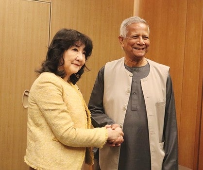 (左)片山さつき財務大臣 (右)ムハマド・ユヌス博士