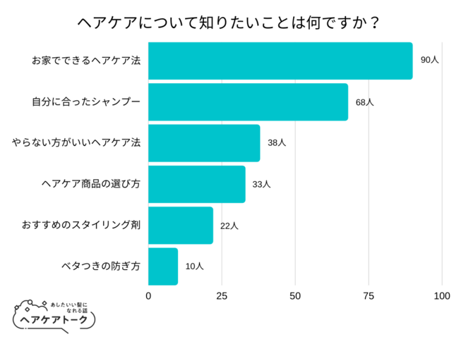 「ヘアケアについて知りたいことは何ですか?」とアンケート調査した結果、1位は『お家でできるヘアケア法』でした。