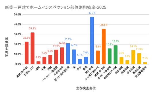 2025年にさくら事務所が実施した新築一戸建てホームインスペクション全1,370件の部位別の調査結果