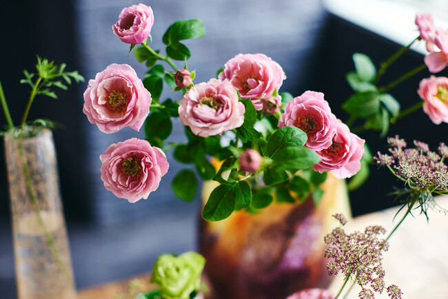 ポップアップストア開催中、今が旬の秋バラをヘンリーディーンのフラワーベースに合わせてディスプレイします。また、「蕾から咲ききるまで美しく、香りのよいバラ」をテーマに、静岡県でバラの育種、品種改良を行う「やぎバラ育種農園」が生み出した、―輪で絵になるオリジナル品種「ArtRose.」を取り揃え、販売いたします。