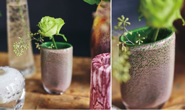 古くからガラス生産が盛んなベルギーで、古典的な吹きガラスの製法を用いて丁寧に手作りされたフラワーベースは、ぽってりとしたフォルムと、モダンでありながら思わず手に取りたくなるような温かみのある表情が特徴。気泡の出方や色味がひとつひとつ異なるのも魅力です。熟練の技術と情熱は、2人の息子と娘に受け継がれ、数々の新作が生み出されています。