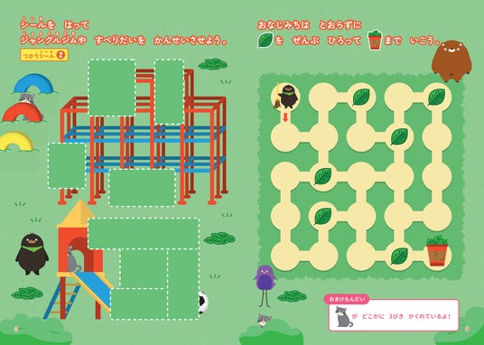 ジャングルジムやすべり台などの遊具が登場する「こうえんへいこう!」編と、イルカやクラゲなど海の生き物が登場する「すいぞくかんへいこう!」編の2冊を発売します。