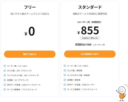 スタンダード 年間契約 月額855円/ユーザー (月契約 月額900円/ユーザー)