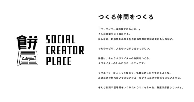 クリエイターコミュニティ「餅屋」の目標は、“クリエイターがクリエイターらしく活動でき、世の中の課題解決にクリエイティブで貢献できる状態を作る”ことです。