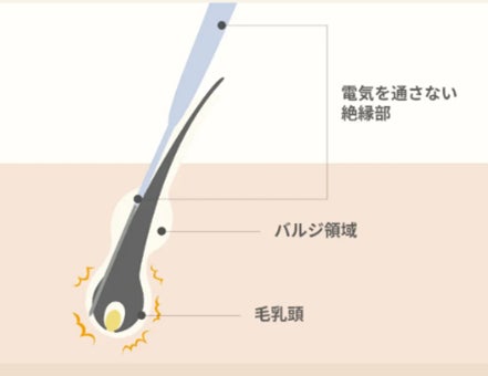 ■施術方法:特殊な針を毛穴に挿入し、そこに電気を通すことで毛乳頭・バルジ領域(発毛組織)を破壊し、脱毛効果を与える施術