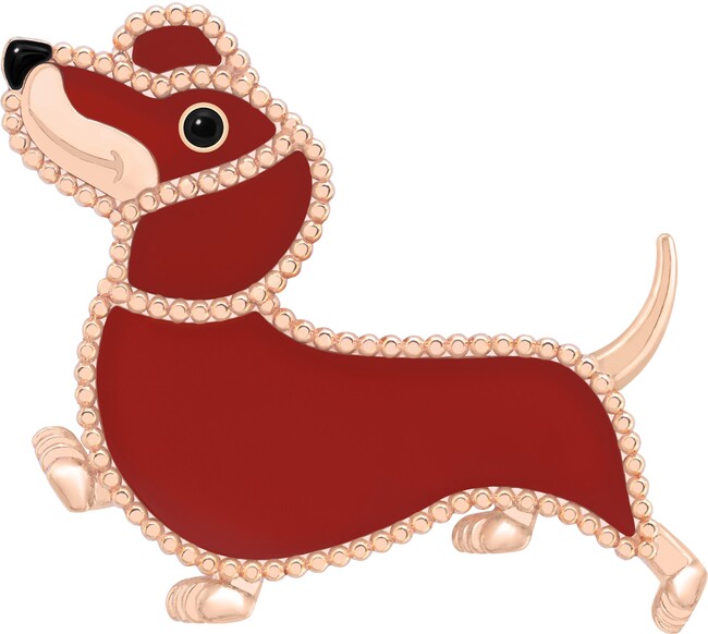 ヴァン クリーフ&アーペルは、100年以上にわたって培ってきた専門知識を基に素材を厳選し、それぞれのクリップに個性溢れる生き生きとした表情を与えています。オーナメンタルストーンでは、鮮やかで均一な色調が選定の基準となります。カーネリアンのオレンジがかったレッドの色味がダックスフンドの毛並みを繊細に表現する一方、マラカイトの調和の取れた縞模様はフロッグの外見を想起させます。またオニキスの深く艶やかな黒が、動物たちの目に輝きを添えています。