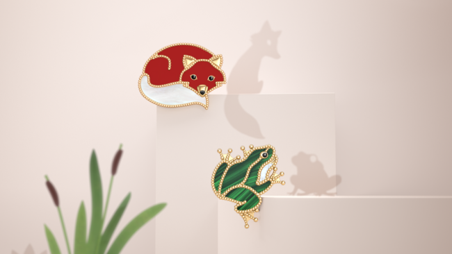 動物たちの姿を詩情豊かに描いたクリップが揃うラッキー アニマルズ コレクションに、新しい仲間が加わりました。テディベア、フォックス、ダックスフンド、ビション フリーゼ、フロッグと名付けられたこれらの動物たちは、オーナメンタルストーンとマザーオブパールで象られ、ゴールドビーズの縁取りがその繊細なコンビネーションを引き立てています。動物たちの表情は生き生きと輝き、ヴァン クリーフ&アーペルの慈愛に満ちた伝統に新たな息吹を吹き込みます。