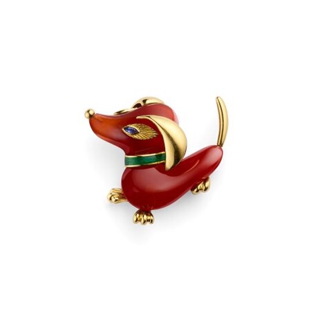 クリップはそれぞれ、動物の個性を際立たせるデザインが目を引きます。知性と慎重さのシンボルであるフォックスは、注意深い動物であり、その滑らかな毛並みが半透明のカーネリアンで強調されています。一方、今にも飛び跳ねそうなフロッグは、躍動的な中に健気さを感じさせる姿で捉えられています。またダックスフンドは陽気で冒険心旺盛な姿勢が、ビション フリーゼは人懐っこく遊び好きな性格が表現されています。そして、テディベアは、子ども時代を懐かしく呼び覚ますような優しい表情を浮かべています。