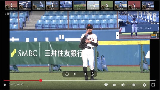 「ピッチャー」「キャッチャー&バッター」「ファースト」「セカンド」「ショート」「サード」「ライト」「センター」「レフト」「試合映像&実況」