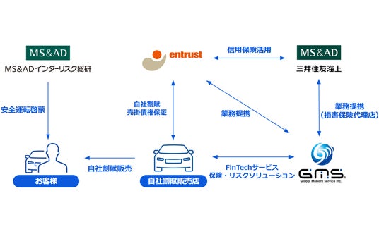 Global Mobility Service株式会社(代表取締役社長 CEO:中島 徳至、以下:「GMS」) は、株式会社イントラスト(代表取締役社長 執行役員:桑原 豊、以下「イントラスト」)、三井住友海上火災保険株式会社(代表取締役社長:舩曵 真一郎、以下「三井住友海上」)、MS&ADインターリスク総研株式会社(代表取締役社長:一本木 真史、以下「インタ総研」)と業務提携し、FinTechを活用した新しい債権保証サービス「カーup応援保証」の試験運用を2025年3月31日に開始します。