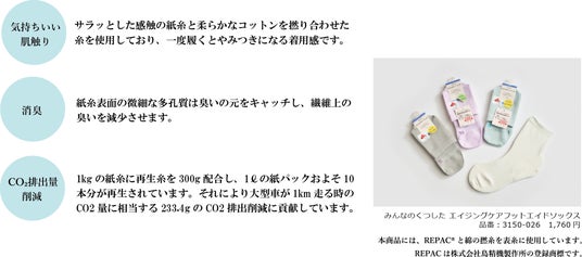 美しい地球と限りある資源を未来へつなぐため、環境の負荷の低減に配慮した素材や製造プロセスにより、履き心地とサステナビリティの両立を追求し、このたびSDGsへの取り組みから生まれたサステナブルソックスを発売いたします。