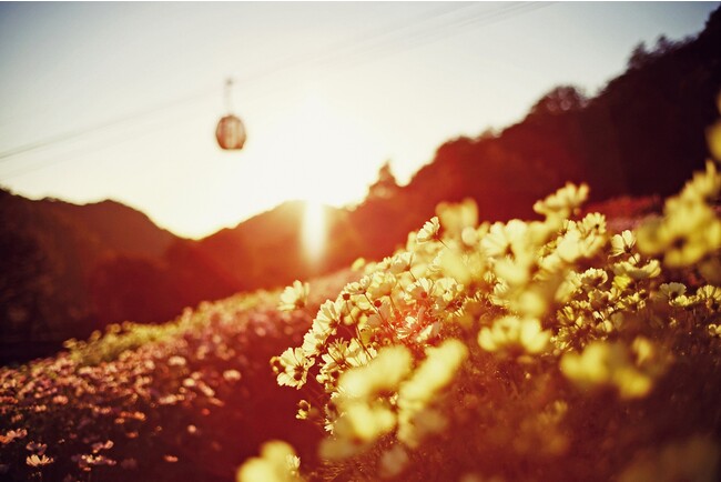 標高400メートルの山上に位置し、港町神戸の街並みが一望できるリゾート施設「神戸布引ハーブ園/ロープウェイ」(運営:神戸リゾートサービス株式会社)は、「GARDEN FEST 2022 -Autumn-」を12月4日(日)まで開催しています。秋を彩る主役のひとつが「コスモス畑」です。淡い黄色やピンクの可憐な花が、秋風に揺られ、朝、昼、夕と時間の経過とともに移り変わる情景は「秋の定番の撮影スポット」となっています。