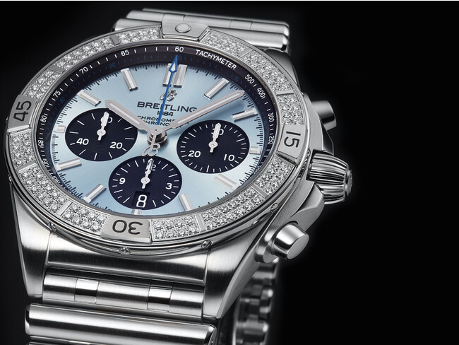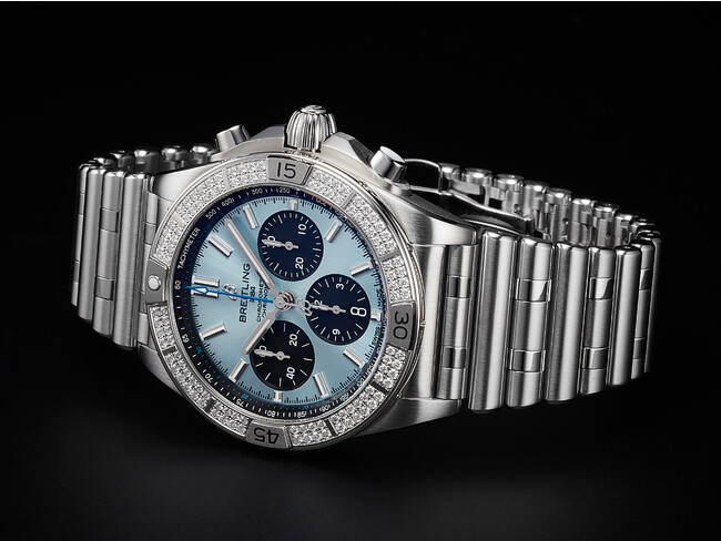 クロノマット B01 42 ジャパン エディションの最新作は、ダイヤルに人気のアイスブルーを採用し、ベゼルには合計1.03カラットにのぼる112個のダイヤモンドをセッティングした大胆でラグジュアリーなモデル。ステンレススチール製のケースにアイスブルーのダイヤルが映え、煌めくダイヤモンドがひときわ目をひきエレガンスを演出します。機能性を維持しながら圧倒的な美しさと存在感を兼ね備えたタイムピースには、精度と信頼性における最高の認定基準であるCOSC公認クロノメーター、キャリバー01 を搭載。サファイアクリスタル越しにその美しいムーブメントを覗き込むことができます。この希少な日本限定モデルは、50本のみのブライトリング ブティックおよびオンライン ブティック限定販売で、ケースバックにはONE OF 50と刻印されています。