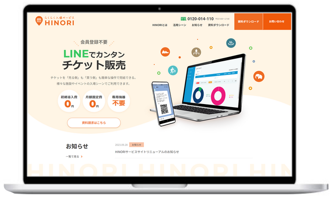 株式会社IC(本社:東京都港区/JASDAQスタンダード4769/代表取締役社長執行役員:齋藤良二)は、【らくらく入場サービス HINORI】の更なるサービスの拡大を目指し、サービスサイトを一新。また、キャッシュレス決済の種類を追加いたしました。