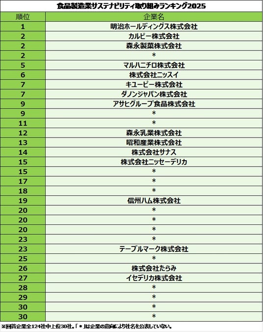 上位30社を公表しています。ただし、回答者にHDと事業会社が重複して含まれる場合はHDを掲載することとし、事業会社は掲載せず、それにより社数が減じた場合は31社以降を追加しています。