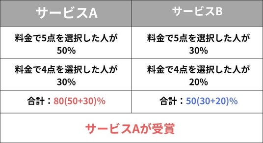 例:使い続けたいサービス(プロバイダ)No.1の項目でアワード受賞先を決定する場合