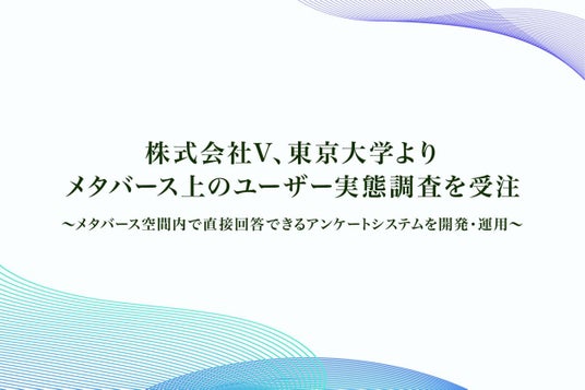 株式会社V(本社:東京都品川区、代表取締役兼CEO:藤原光汰、以下 V)は、東京大学 バーチャルリアリティ教育研究センターのVR/メタバース実践寄付研究部門が実施するメタバースユーザーの実態調査において、調査実施業務を受注しました。Vは、自社で開発したメタバース空間内で直接回答できるアンケートシステムを活用し、調査環境の構築・設置・運用を担っています。