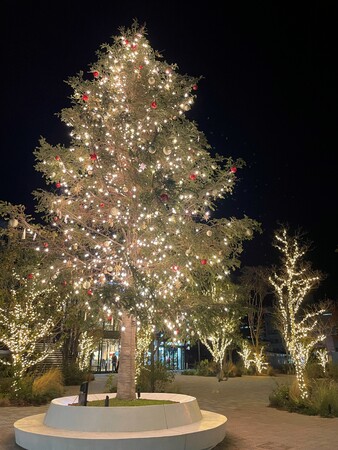 杜の街グレースのシンボルツリーである高さ12mのもみの木(2022年6月に植樹|熊本県産)を330個のオーナメントで装飾し、昼夜楽しめるクリスマスツリーにします。