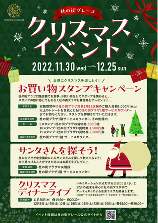 「杜の街グレース」のシンボルツリーである もみの木 が、いよいよクリスマスツリーとなってお目見えするほか、クリスマスイベントや週末限定のクリスマスディナーライブも開催。