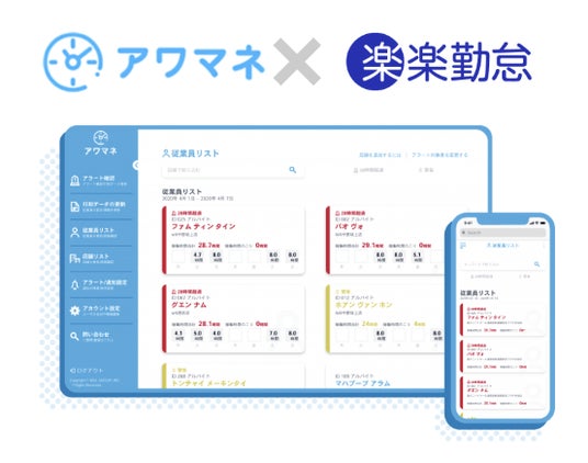 DXHUB株式会社(本社:京都府京都市下京区中堂寺 代表取締役社長:澤田 賢二)が展開する外国人非正規雇用に特化した就労時間管理システム『アワマネ』(https://hourmane.com/)は、株式会社ラクス(本社:東京都渋谷区、代表取締役:中村崇則)が提供する勤怠管理システム『楽楽勤怠』とのAPI 連携を開始しました。これにより、日々の勤怠実績データの取り込みと28時間超過前のアラートメール送付を自動で行うことが可能になり、利用企業の業務工数と雇用リスクを軽減します。