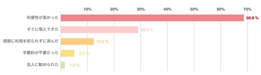 アンケートによれば、それぞれの借入方法を選んだ理由として「利便性の高さ(68.8%)」が圧倒的多数を占める結果となった。