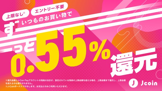 J-Coin Payの決済金額の0.55%をJ-Coinボーナスで還元します。
