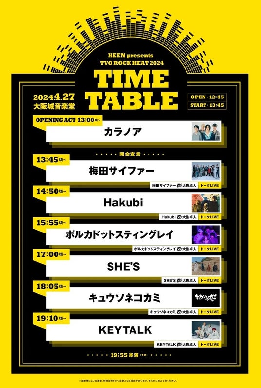 「KEEN presents TVO ROCK HEAT 2024」タイムスケジュール