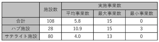 ● 平均実施事業数は、ハブ施設10.9、サテライト施設4.0であった。