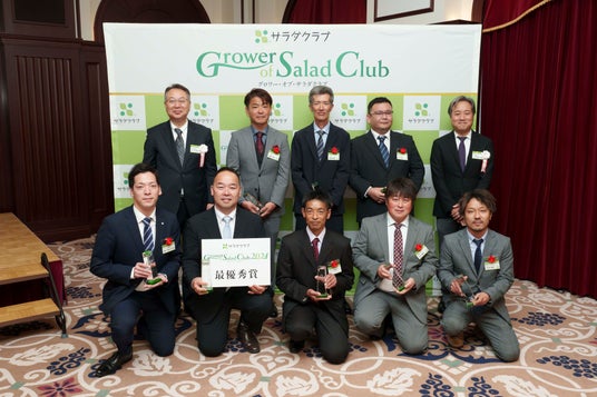 株式会社サラダクラブ(代表取締役社長:金子俊浩、本社:東京都調布市)は、4月19日(金)に、霞山会館(千代田区)にて、契約産地を表彰する「Grower of Salad Club 2024(グロワー・オブ・サラダクラブ 2024)」を開催しました。 「Grower of Salad Club」は、日頃お世話になっている生産者のかたへ、感謝の想いを伝えることを目的に2017年から毎年実施しています。8回目となる今回は、全国に約400ある契約産地の中から8産地を「最優秀賞」、16産地を「優秀賞」、2産地を「特別賞」として表彰しました。