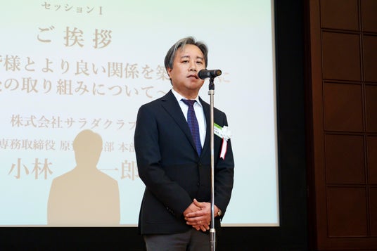 Grower of Salad Clubについて小林は、「サラダクラブを育てていただいた生産者の方々との長きにわたる取り組みの成果だと感じている」と述べ、また着任後に各地の契約産地を訪れるなかで、「円安による各資材のコストの上昇や物流の問題、農業就業者の減少の懸念など、生産者を取り巻く環境が厳しくなっていることを感じる」と話しました。また、「超高齢化社会へ向かうなかでパッケージサラダはこれからも需要が伸びると予想している。サラダクラブとしては、これまで受け入れていない原料を活用したり、新しい野菜栽培を希望する生産者にはその支援をする、あるいは産地の拡大を支援するなど、生産者の方々と共に未来を考え、生産者の方の困りごとを一緒に解決したい。そして、野菜の価値を上げていきたいと考えている。そのために、サラダクラブの商品価値を上げて、消費者の野菜摂取を促し、野菜の美味しさを商品を通して伝えていきたい」と話しました。