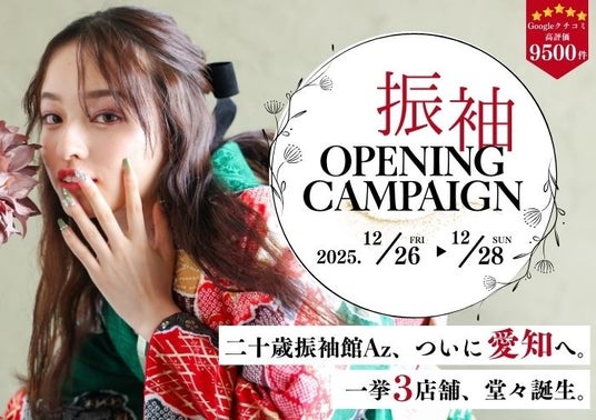 株式会社小野写真館(代表取締役社長:小野 哲人、本社:茨城県ひたちなか市、以下「当社」)は、2025年12月15日付で当社と包括的・戦略的提携の一環として株式会社Memoris(本社:愛知県名古屋市、以下「Memoris」)の運営のもと、当社直営で関東地方で14店舗展開する振袖・袴レンタルブランド「二十歳振袖館Az」を愛知県内の一宮店(一宮市妙興寺)・天白店(名古屋市天白区)・新瑞橋店(名古屋市瑞穂区)の3店舗を2025年12月26日(金)に同時オープンいたします。