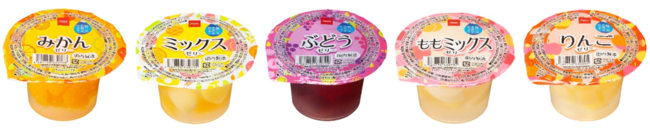 お家でも外出先でも手軽に食べられるのが嬉しいカップゼリーは、みかん・ミックス・ぶどう・ももミックス・りんごの5フレーバーを展開。少し小ぶりな200gで食べ切りにちょうどよいサイズです。